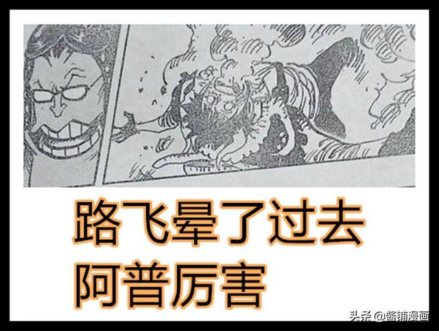 阿普再次攻击路飞,路飞却被炸晕了,受伤严重呀,他的见闻色霸气白学了吗?竟然躲不过音波攻击。路飞被阿普死死克制,毫无还手之力。阿普的实力被低估了,他的音波攻击属于无形的,当初的黄猿也被音波炸碎了,只是他是自然系恶魔果实,没有对黄猿造成实质性伤害。