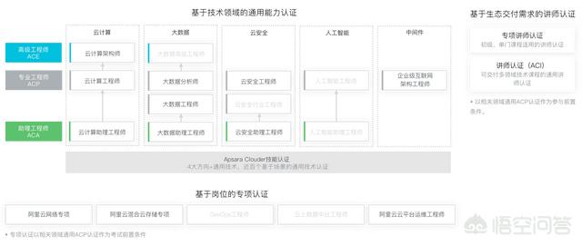 基于阿里云核心产品技术分为云计算、大数据、云安全、人工智能、中间件几大领域,获得认证证明你可以基于阿里云产品在对应的技术方向上解决企业的基本业务问题。具体级别如下: