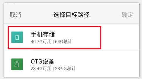 点击复制后会自动跳转到存储设备页面,点击手机存储;