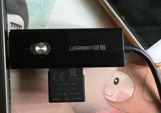 我这个读卡器比较特别,首先是电脑、手机通用,可同时用也可以分开用,带有OTG功能,所以读卡器两端设计的接口分别是电脑的USB接口,手机用的type-c接口。如下图就是我在用的绿联数码品牌的读卡器: