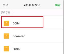 在手机存储中,里面以文件夹的形式展现,找到手机存储的DICM文件夹,再点击右上角的确定,相片已经保存在手机中了;