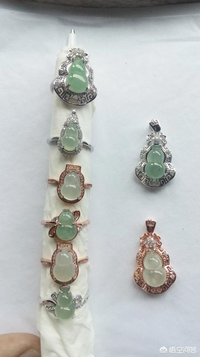 貔貅戒面、葫芦戒面。一般来说,一只满绿,冰种蛋面,直径18mm以上,厚度10mm左右的,18k白金,镶满钻的话,价格在5万左右。女庄蛋面满绿、冰种、直径10-12左右的,18k白金,镶钻,价格在3万左右。这里说的价格只是大概,要看实物情况才能定价,只能给大家做个参考。材料还要看是否老矿料,如木那矿的,满色玻璃种的荧光的,上百万一个的都有。普通好种戒面,