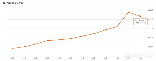 第一、济南房价2019年维持7%左右的涨幅是大概率事件。图上所示是2018年济南房价走势图,房价从2018年1月份的15919元上涨到12月份的17674元,年上涨幅度为11%,算是比较正常的了。根据2018年12月份住建部公布的70个大中城市的房价上涨情况,这70个大中城市房价年上涨幅度维持在7-8%是大概率事件,所以作为济南(山东省会)来说未来上涨的大概率事件,尤其是作为山东省这几年着力打造的强省会。