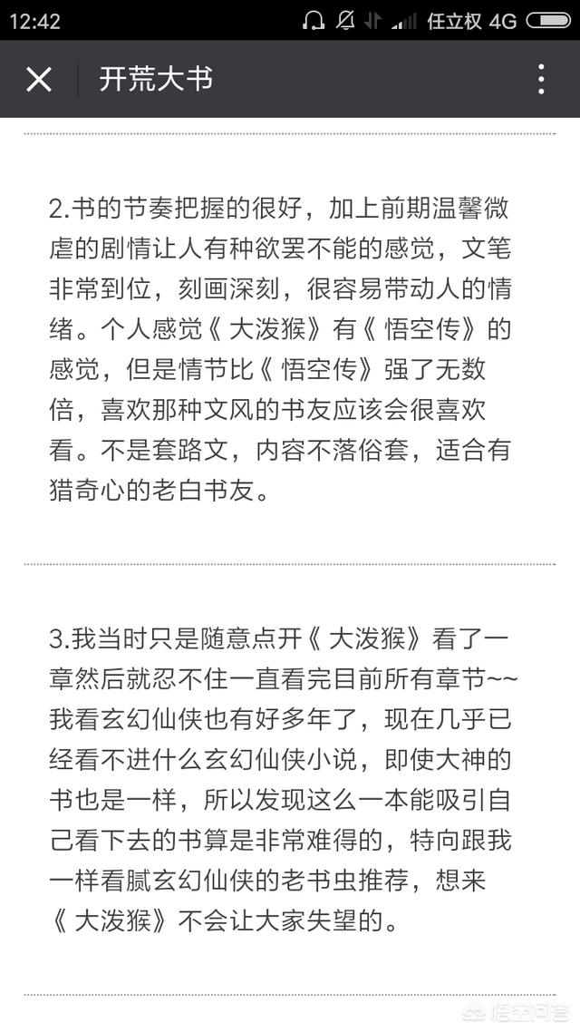 《大泼猴》这本小说 我看完之后才 啥叫高文笔,非常鲜明与丰富的人物塑造,跌宕起伏的情节让人 难以自拔 ,背景宏大到 整个 中国神话世界,伏笔 埋的一个接一个,极大的提高了读者的阅读兴趣,不同 人物的角度让你领略这个 无情的世界!
