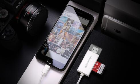 当然了,这个读卡器因为设计了“TF/SD”两种卡槽,所以你还可以在苹果手机上插相机SD卡,如果你相机上拍了很多文艺的照片,想立刻马上发朋友圈分享,那么也可以通过这款读卡器来实现。