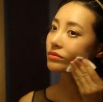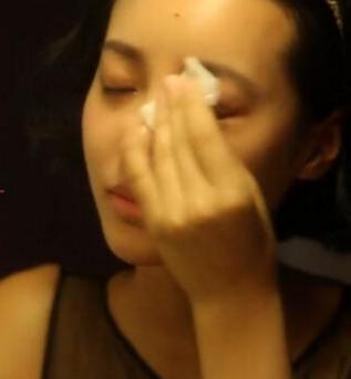 用卸妆水浸湿化妆棉,轻轻擦拭后,厚重的彩妆轻易卸去。