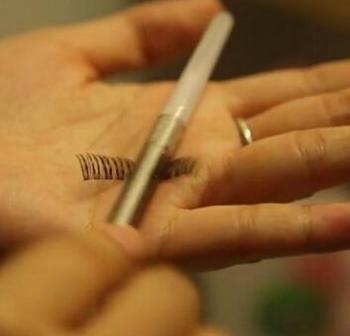 用笔揉搓一下根部,再用手弯折假睫毛,让根部恢复自然弧度。