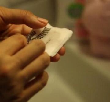再怎么失落也不要直接撕掉夹睫毛,用温和卸妆水浸透棉签,在假睫毛根部轻轻划过。