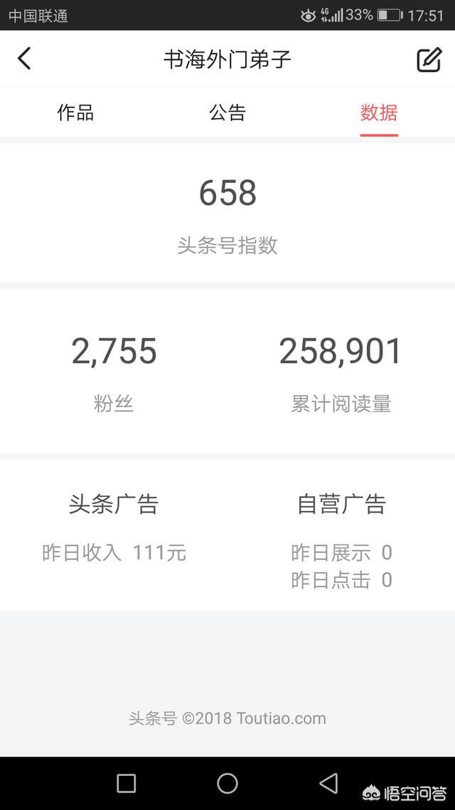 这几张图,这是我在家没事的时候做到,就是每天花一个多小时或到两个小时的时间录几个视频传上去。不过呢,我已经开通原创啦,所以收益比较高,如果没有开通原创的话,每天同样的播放量,也就是四块钱左右。所以说呢,不管做什么,应要耐得住寂寞,忍受的了孤独。只有当你熬过了那段时期之后,熬过了那个几分几毛几块钱的实际之后才可以见到大的时候也自媒体就是这样,前期需要好好经营,好好的经营粉丝。