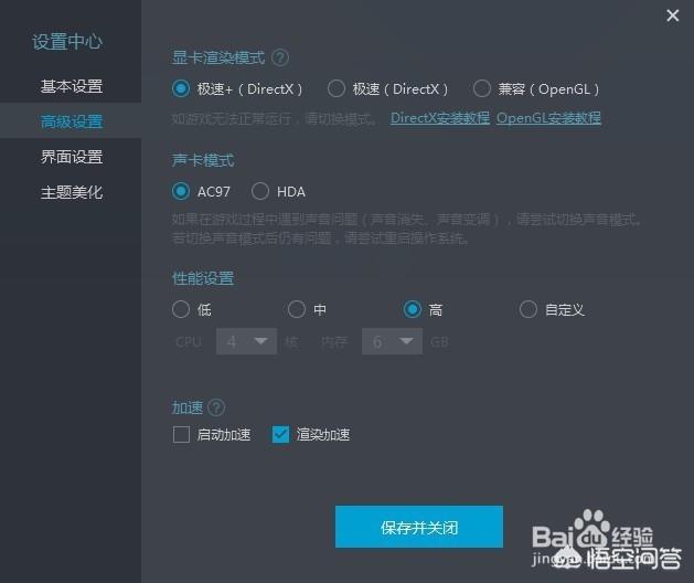 在性能设置那勾选中或者高,然后点击保存并关闭,等待模拟器的重启。要不然进入光荣使命会提示不支持您的手机型号。