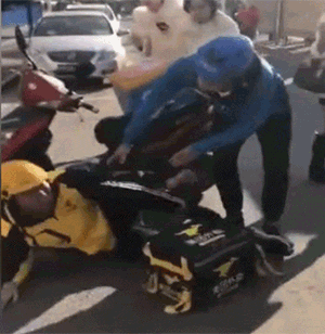 “为什么要给我差评?”11月23日,在江苏淮安市淮阴区的大街上,一名穿美团外卖衣服的男子坐在地上大声哭喊,引来旁边路人的围观,也有热心群众向其询问情况,旁边一名身穿饿了么外卖衣服的男子也向其递送纸巾。