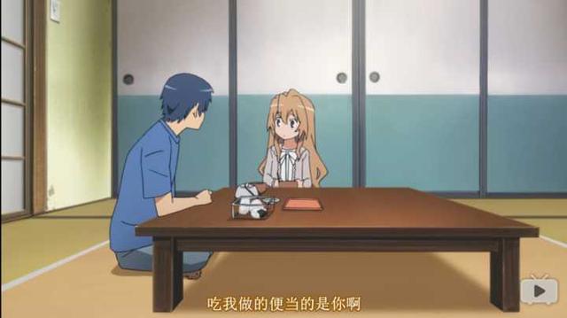 对于两个孤独的人来说,他们会干什么呢?异性相吸的法则再一次得到了应验,生活上无力的大河偏偏遇到了家务能力超强的龙儿,而对于需要一个“付出对象”的高须龙儿来说,逢坂大河毫无疑问是此时最好的对象。
