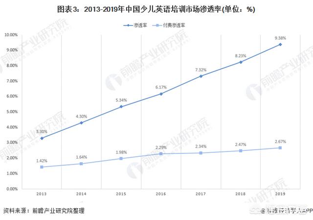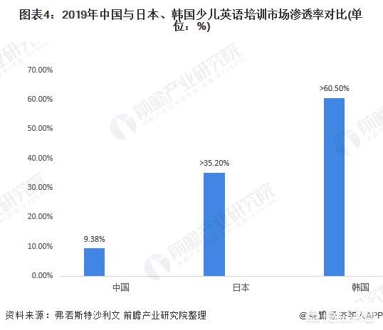 少儿英语培训市场渗透率接近10%,与日本、韩国相比有较大上升空间