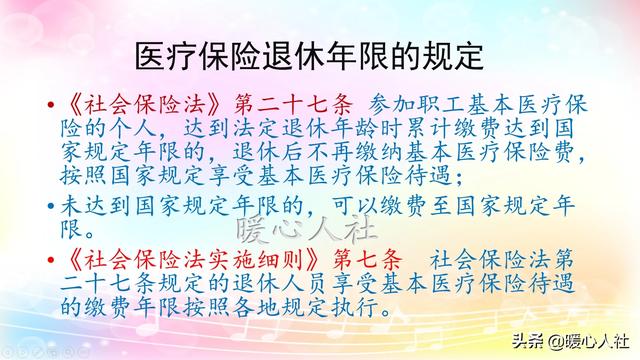 我们在《社会保险法实施细则》中又找到,社会保险法第27条规定的退休人员享受基本医疗保险待遇的缴费年,按照各地规定执行。