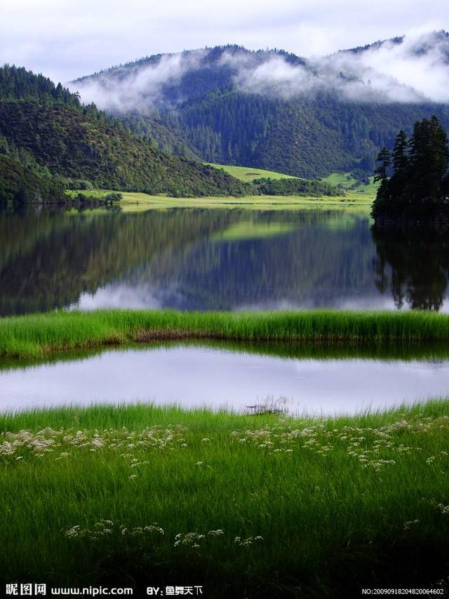 金色霞光照湖水,万丈光芒洒青山。