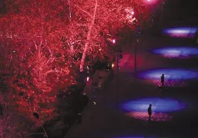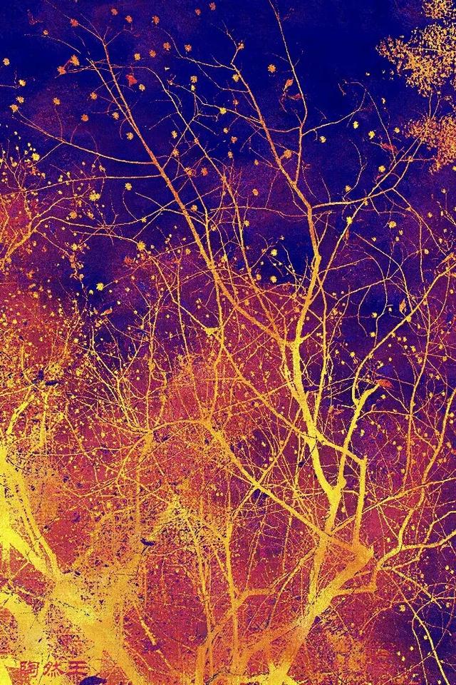 下联:火树缤纷,彩灯挂悬晓秋中。