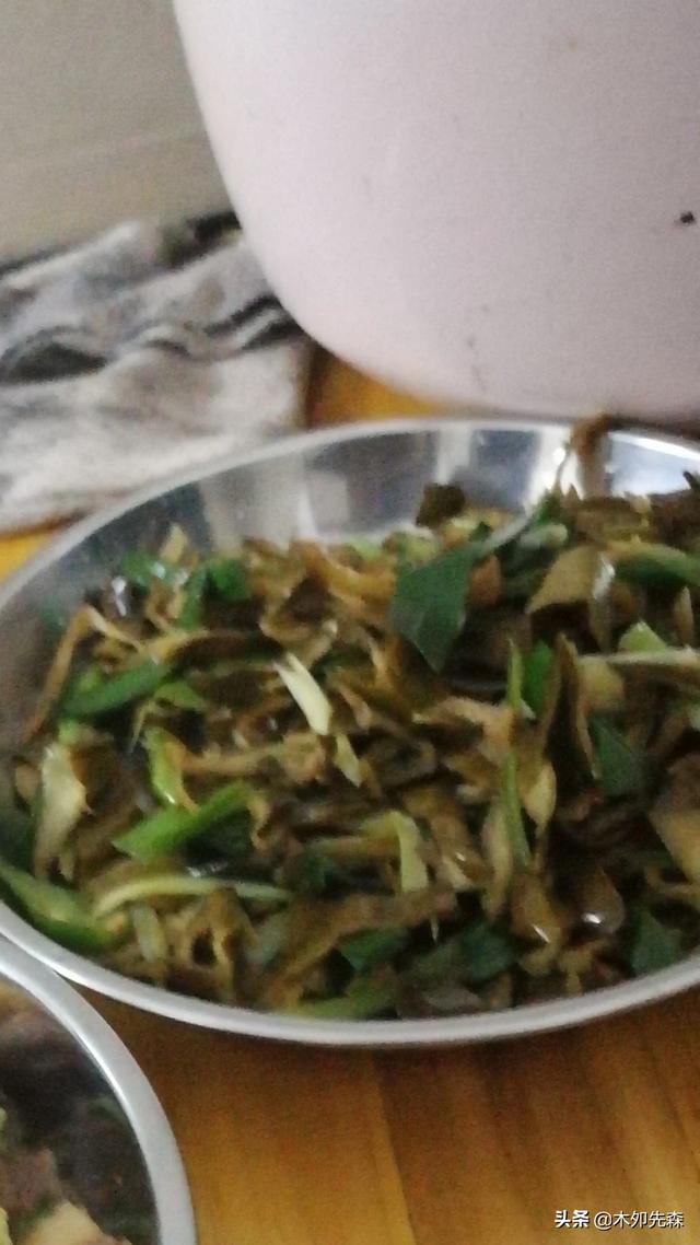 再过一段时间,酸味渐浓,此时当小吃不大适宜了(除了喜欢吃酸味的人),当地人会当酸菜开胃菜食用,取出小蝶,大蒜爆香、小火翻炒两分钟、根据个人口味加入酱油、小米辣调味,此时香味扑鼻,令人口舌生津!出锅即可食用,与米粥送吃极是美味(小编小时因贪嘴食用过多而造成肠胃不适,实在惭愧!)夏天吃尤为可口!
