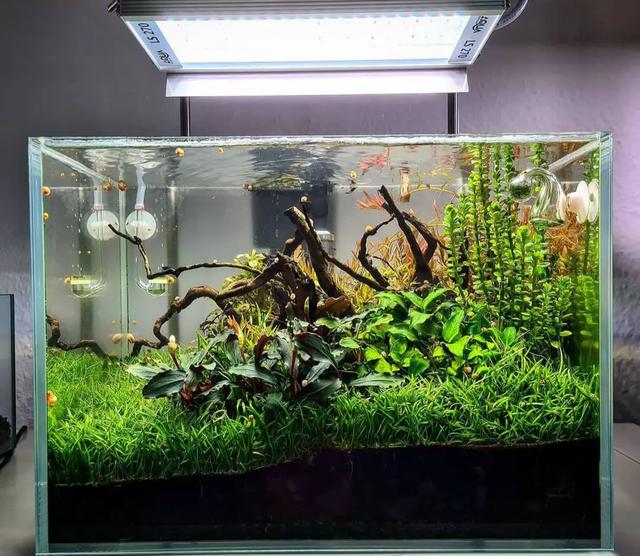 6.南美风格造景,说到这南美风格也是我最喜欢的风格了,主要运用大型皇冠草类水草为主景,用沉木以及纤巧靓丽的有茎水草和同样原产的鱼类共同勾勒出南美古老。更能体现出一种神秘的美,让你向往。