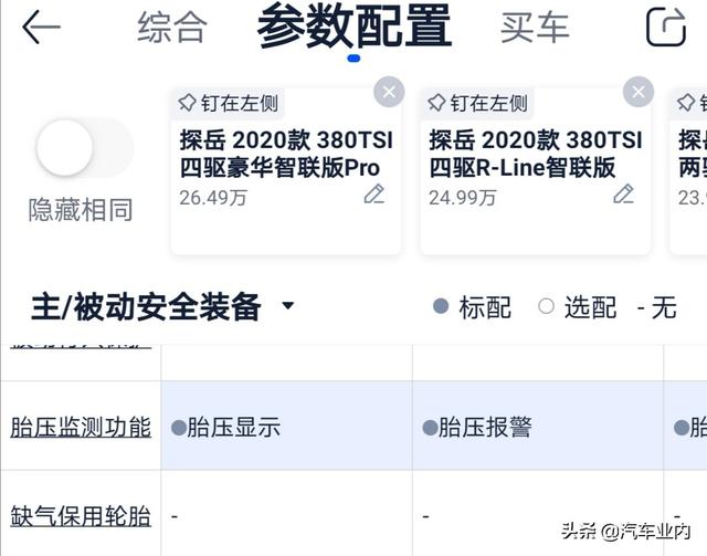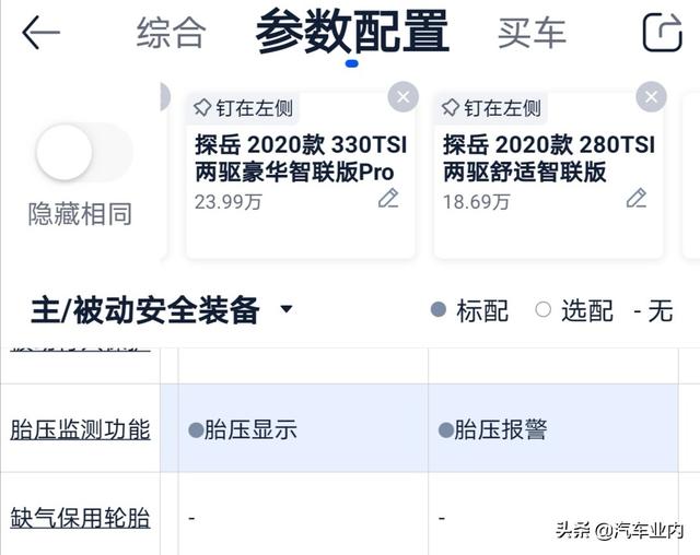 胎压监测是探岳的标配,智联版,舒适版,豪华版出厂都有标配胎压监测