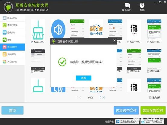 使用电脑软件对手机删除的照片恢复,在电脑上找到【互盾安卓恢复大师】这个软件,并且删除照片的手机连接到电脑上,使用软件里面的功能对手机中的数据进行扫描。