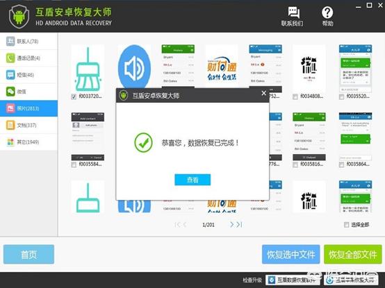 找到电脑软件对删除的照片恢复,在电脑上找到【互盾安卓恢复大师】获取之后将手机连接到电脑上使用软件的“一键恢复”功能中的快速扫描对手机中的数据进行扫描操作。