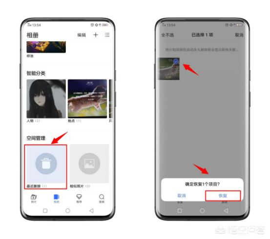 步骤:打开手机相册,在相册中找到“最近删除”功能点击进入之后从里面找到需要恢复的照片,然后选择进行恢复即可。