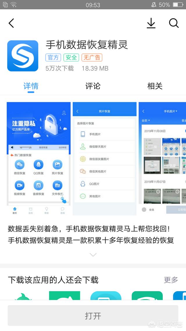 第一步:我们可以在手机的浏览器或应用宝里搜索“手机数据恢复精灵”这个软件,然后安装这个软件。