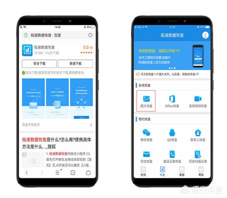 打开安卓手机的手机浏览器或者是应用宝,然后搜索“极速数据恢复”进行下载。安装到手机之后,使用极速数据恢复就可以看到它的照片功能,可以对手机内删除的照片进行扫描,然后恢复到手机上。