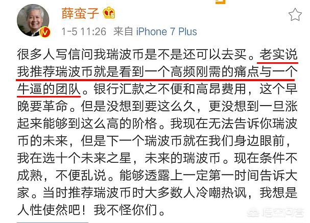 这次朱啸虎说的是瑞波币,就是被薛蛮子大力宣传过的那个数字货币。
