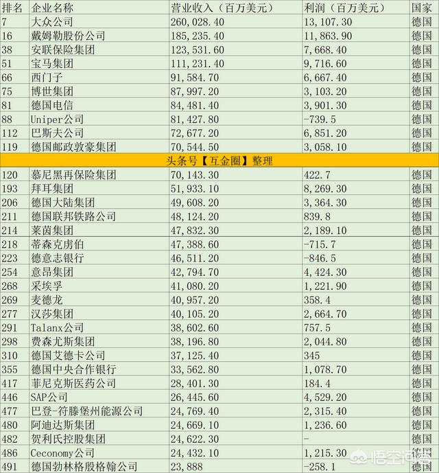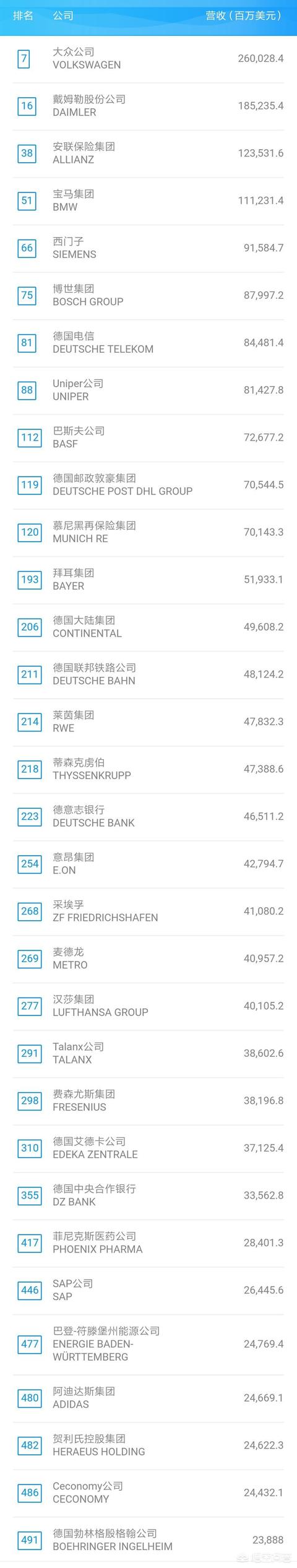 德国是一个极其发达的资本主义国家,其科技、经济也在世界各国中处于前列,下面是最新的世界500强中的德国企业,供大家参考: