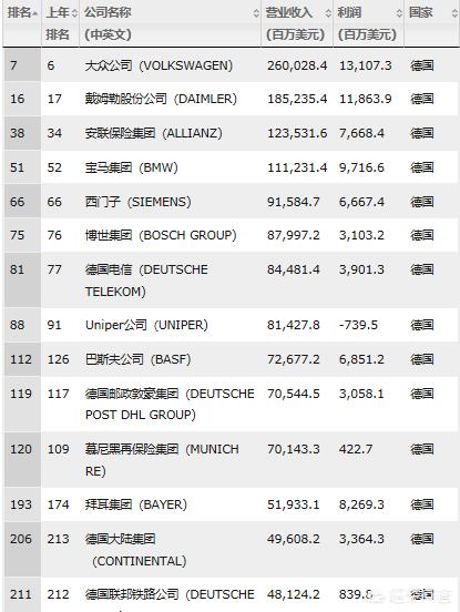 德国有哪些企业上榜世界500强?