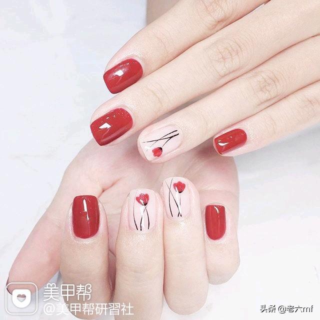 如果觉得单纯的酒红色太过单调沉闷,酒红搭配白色,金色的美甲彩绘显得更加青春活力。