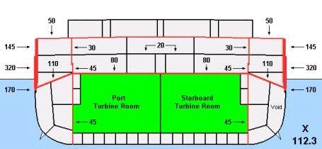 以上图的波斯猫级为例,320mm的主装甲带后面是110mm的穹甲,核心舱上面是层80mm水平装甲。