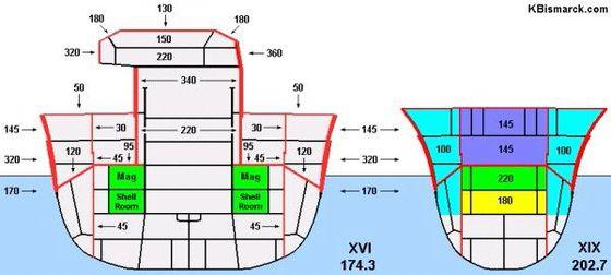 这种穹甲布局缺点就是限制了核心舱的高度,造成吨位浪费严重(大德意志吨位浪费能力世界第一)。