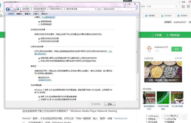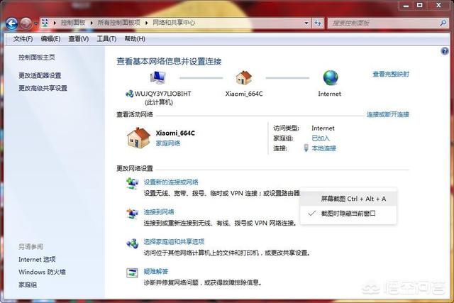 3.打开电脑上网络——网络和共享中心——更改高级共享设置(左上)。我现在的网络位置在家庭网络上,所以我就在家庭网络上设置。怎么创建家庭网络可以自行度娘。也可以在公共网络位置上设置。