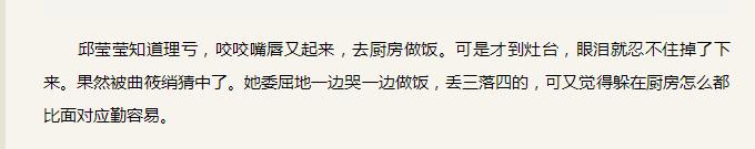 想起这些,应勤才知邱莹莹的好。说到底,这也是因为他找的那个老家的姑娘不靠谱,不好,才会想起来邱莹莹的好。