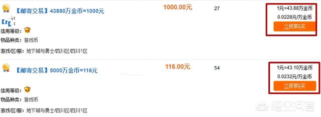 首先是金币寄售价格,100万金币换2.88元,金币比例在1:35左右;