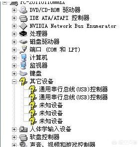 2.看设备管理器,上有没有像下图一样的黄色问号。