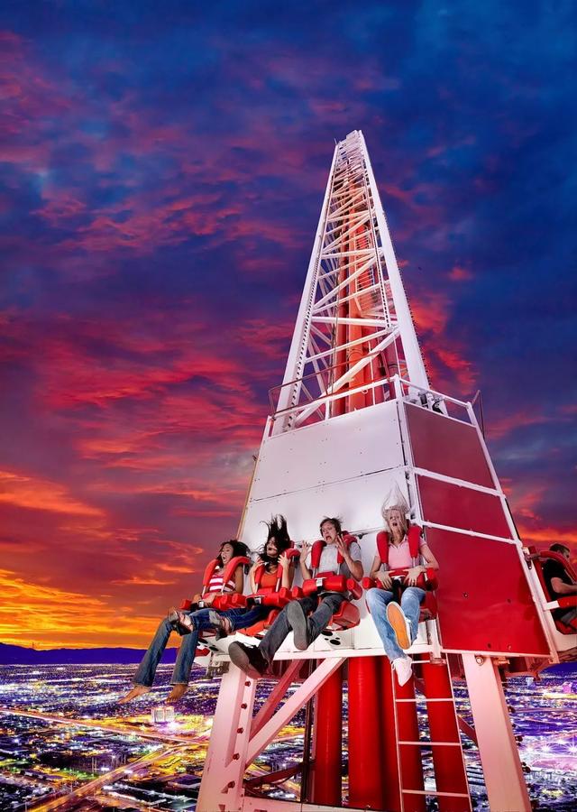 如果你的美国之行之中有拉斯维加斯这一站,那么在潇洒娱乐了之后,你会不会也会选择到这里坐个跳楼机或者玩个过山车,顺便感受一下350多米高悬空欣赏城市风景的"绝妙"感觉呢?