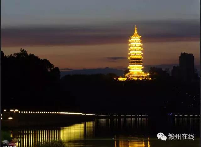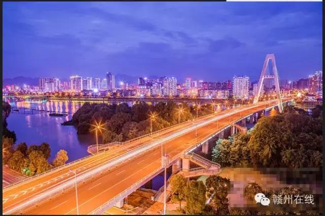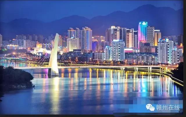 站在赣州城区的至高点看风景,那是怎样一幅美好的画面:夜空似藏青色的帷幕,点缀着闪闪繁星,远处目之所及的城区就像是浓妆淡抹的现代美女,时尚而炫目。各色闪亮的霓虹灯让整个城市流光溢彩、神采飞扬,总让人不由深深地沉醉!