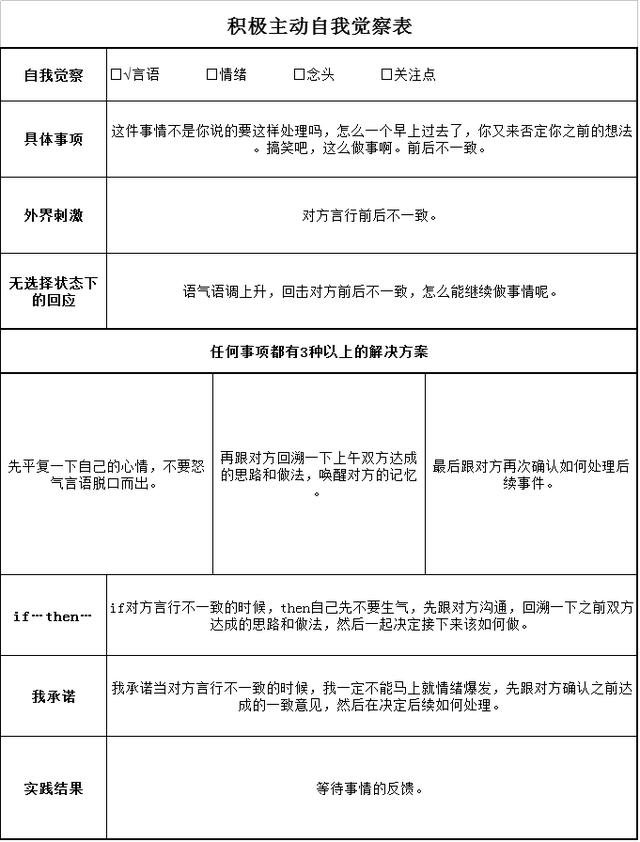 当自己的语言充满攻击性、充满抱怨、充满负面能量的时候,自己没有做到积极主动。当自己的情绪低落、一触即发、翻脸成绿巨人的时候,自己没有做到积极主动。当自己有固执的信念,觉得自己就这样了,没有改变的空间的时候,自己没有做到积极主动。