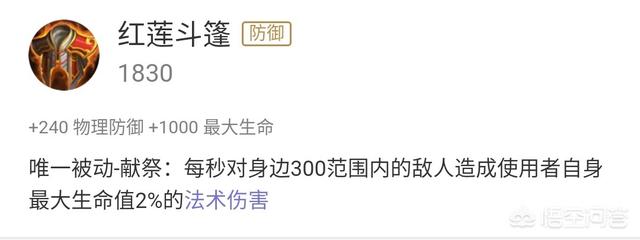 一般玩家只知道红莲斗篷是一件防御装备,可以给身边的敌人造成一个灼烧的伤害,但并没有真正去发掘这件装备的伤害。根据红莲斗篷被动效果描述,每秒可以对身边敌人造成2%最大生命值的法术伤害,也就是说,佩戴者的生命值越高伤害越高。