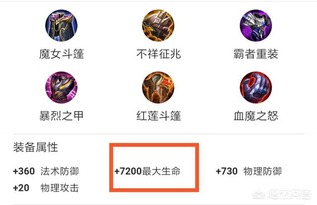 那么其实问题锁定在出装是什么上面,那么我否定这种套路的玩法似乎有些偏题。那么对于出装,我给出的答案是抵抗之靴、熔岩斗篷、霸者重装、暴烈之甲、魔女斗篷和不祥征兆(极寒风暴也不错)。整体看上去中规中矩,能不能够达到18000生命值我不知道,但是能够熬到这个时期的廉颇,估计也都心力交瘁了(手动滑稽)。
