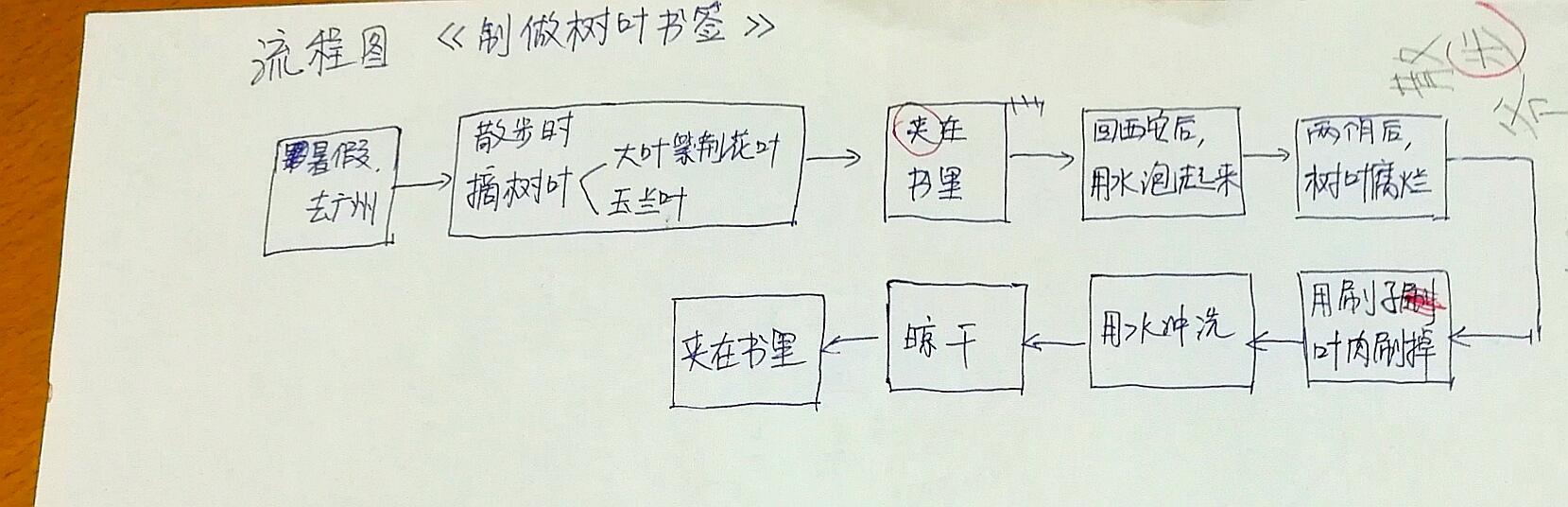 记叙文的写作中,我用到流程图,来帮助女儿理清时间发展的先后顺序。