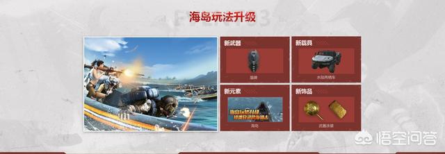 海岛玩法升级,增加了金砖、金锅等具有特色的涂装,新武器盾牌、新载具水陆两栖车。