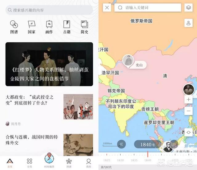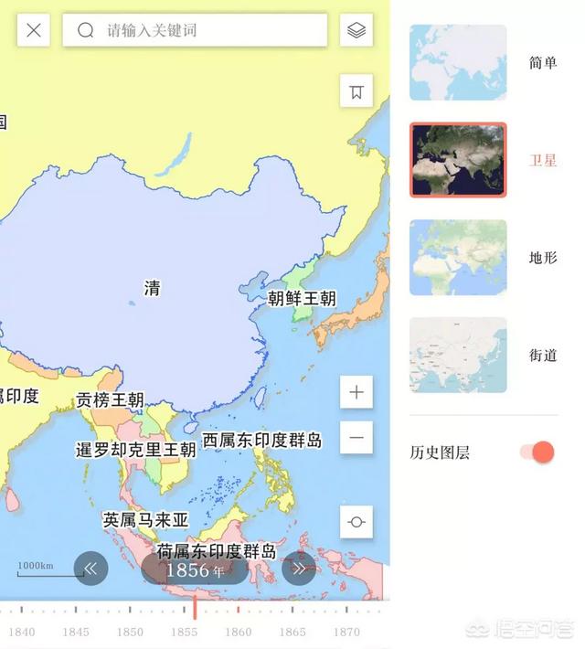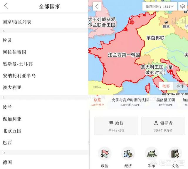 时间线地图演变,精确到1年调整,可以看卫星地图,当然卫星地图是现在的哈,不过可以看到以前的地点现在变成啥样,点击不同的疆域会显示一系列的国家详情,进而引申出好多知识点。