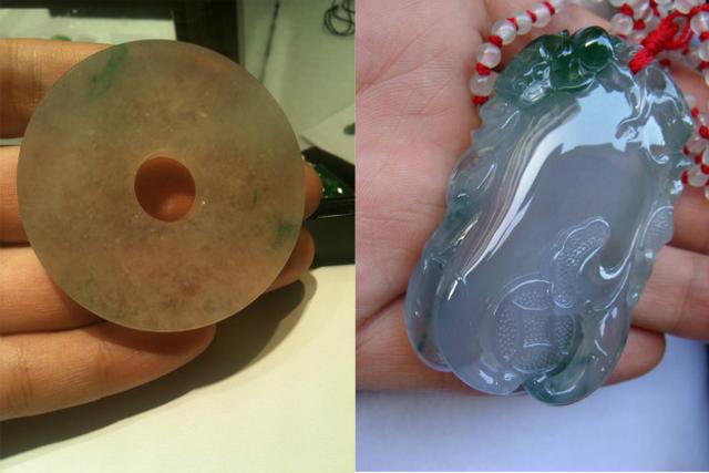 上图左边的怀扣的水头比右边的水头好,但结构疏松,致密度差!但右边饰品的种要比左边好,油性好,致密度高!