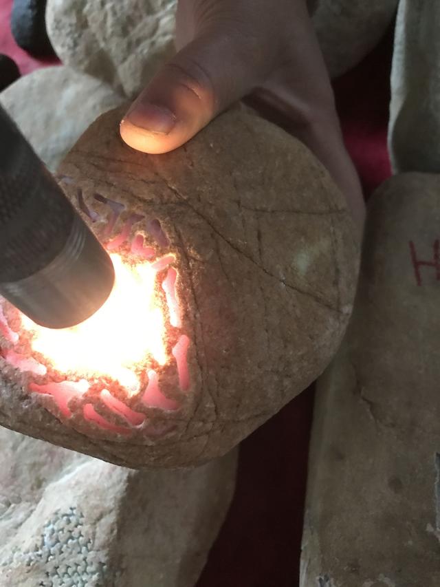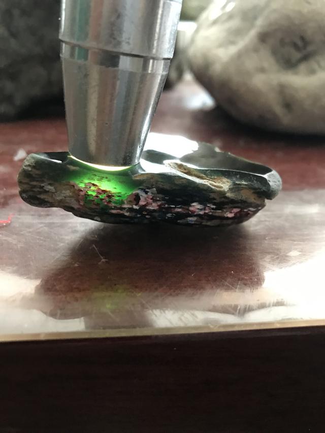 嫩空石头常见紫色光感效应,皮壳上看到紫色光线浑浊一定要注意,是种质相对较嫩的一种表现!