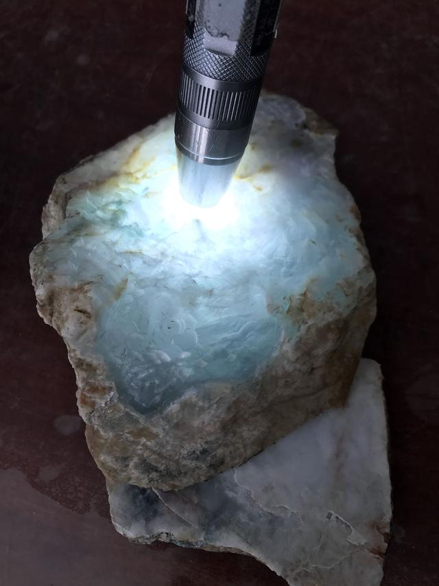 这是朋友寄过来的,灯光效果非常具备欺骗性!种嫩,水长,这种紫色切开就没有了,玉质跟豆腐渣一样