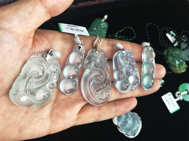 上图为荧光更好的玻璃种翡翠成品,人见人爱的美感!